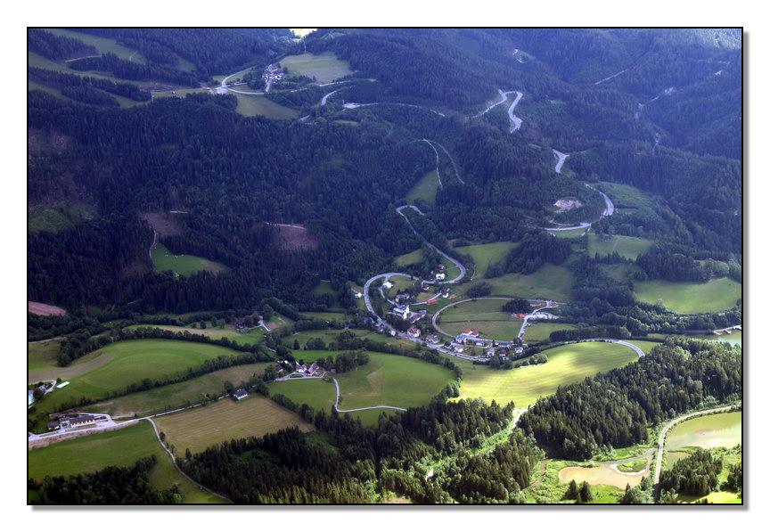 Ein Blick zurück, die unzähligen Kehren am Josephsberg