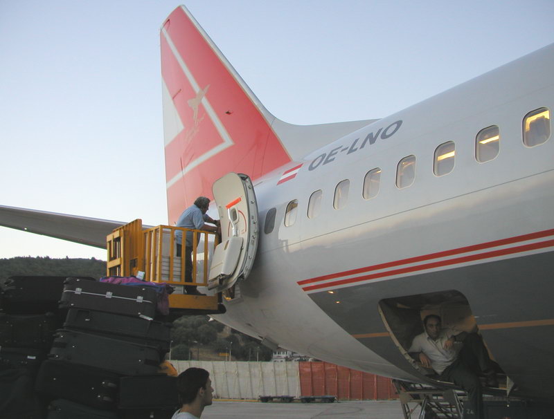 Unten in der hinteren Ladeluke wurden gerade die letzten Koffer ausgeladen und es ist warten und verschnaufen angesagt.