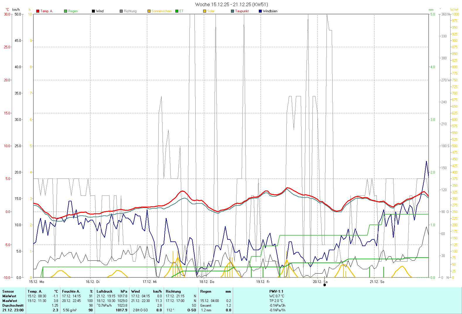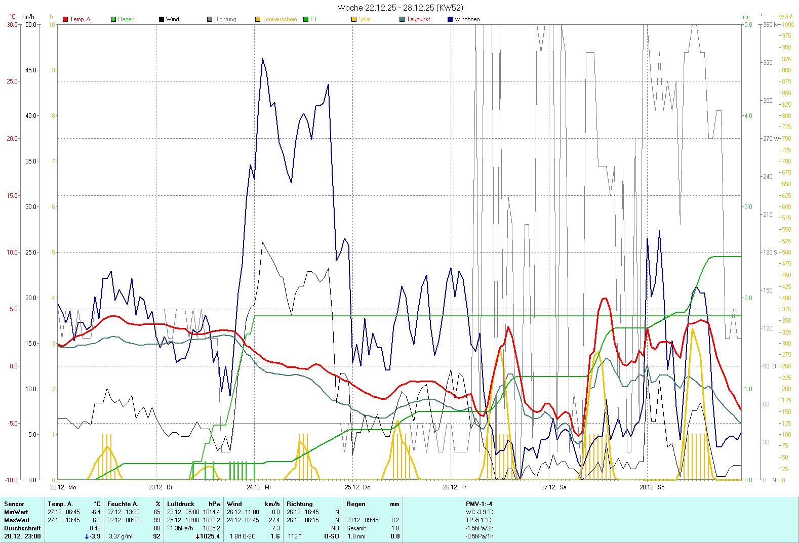 Hier die Auswertung der aufgezeichneten Daten meiner Wetterstation 2025