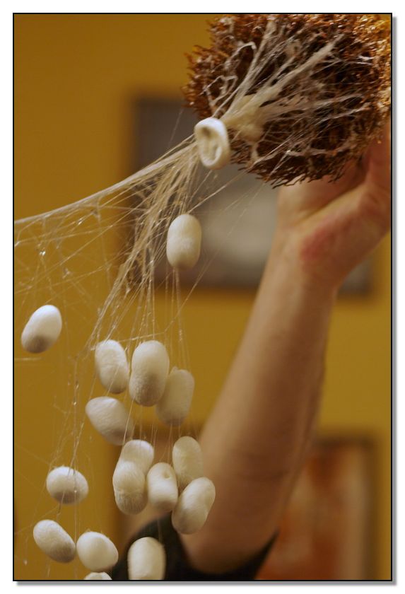 Die Fäden lösen sich, damit sind sie bereit um Abwickeln und spinnen.