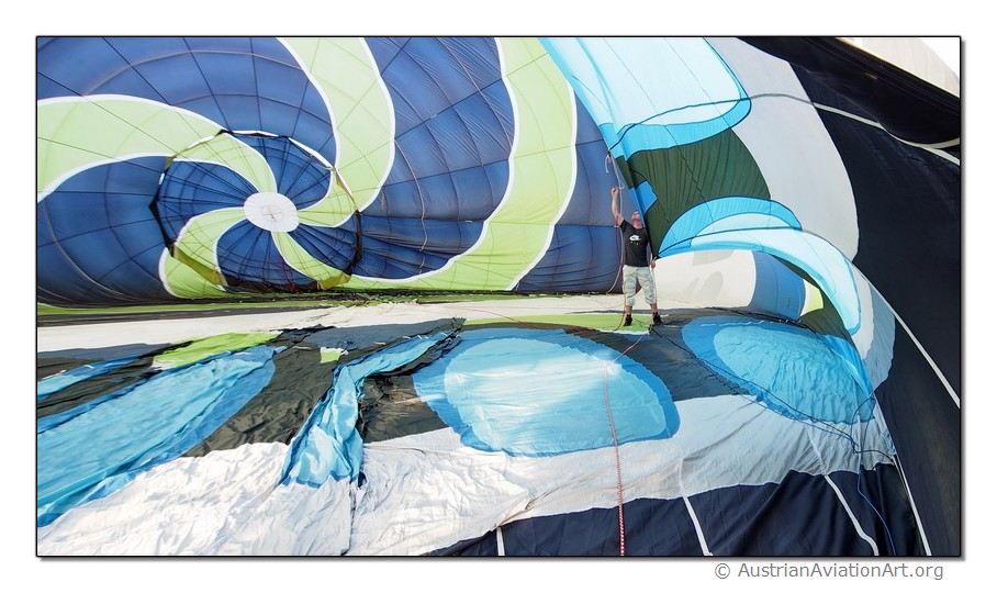 Der Ballon hat seitliche Öffnungen, die man mit den Leinen öffnen kann. Womit man den Ballon bei Bedarf drehen kann.