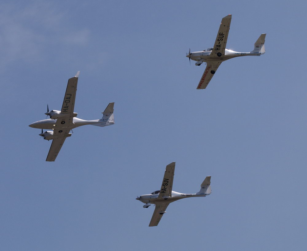 Eine Abordnung von in Ungarn registrierten Diamond Aircrafts - angeführt von einer DA42