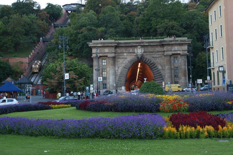 Hier ein Blick zurück zum Tunnel durch den Burgberg. Daneben der Schrägaufzug hinauf.
