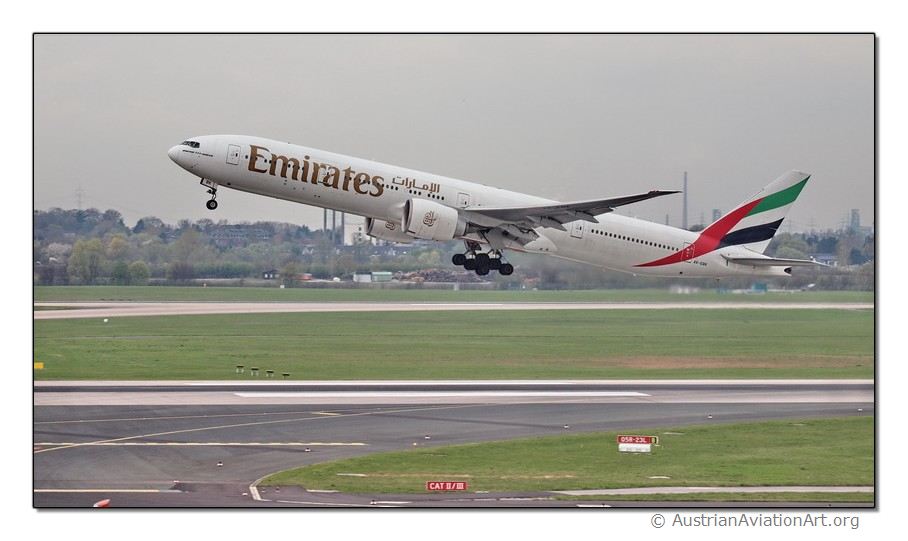 A6-EBK B777-300 hebt sich in die Luft.