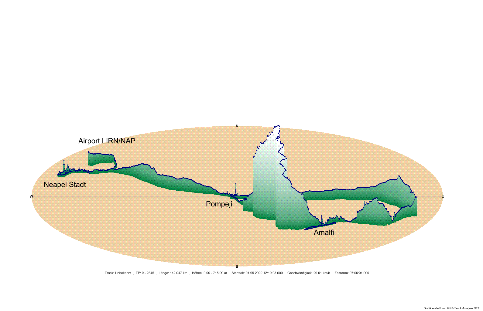 Rundfahrt in WikiLog: Rundfahrt: Pompeij, Amalfi, Neapel - GoogleEarth - 2D-Profil - 3D-Profil