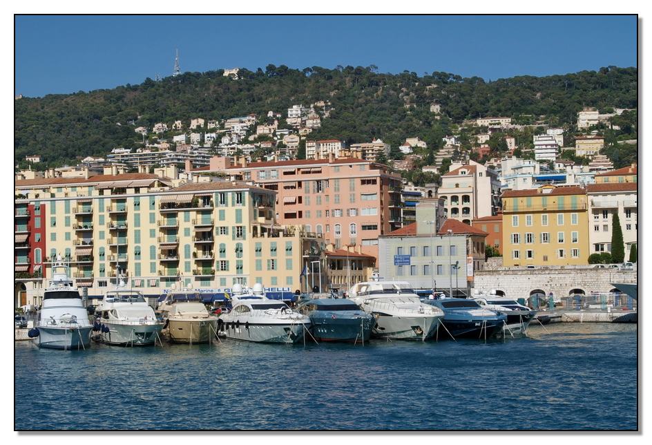 Nizza Marina - das kleine weise Haus neben der Sendeanlage gehört Sir Elton John