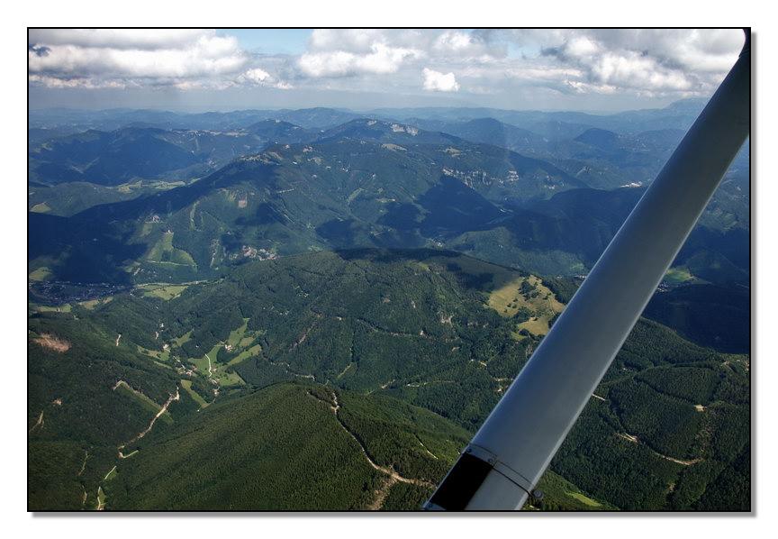 Bildmitte ist die Wiese am Himmel zu sehen. Hinter dem Berg bei Freiland zweigt sich des Traisental