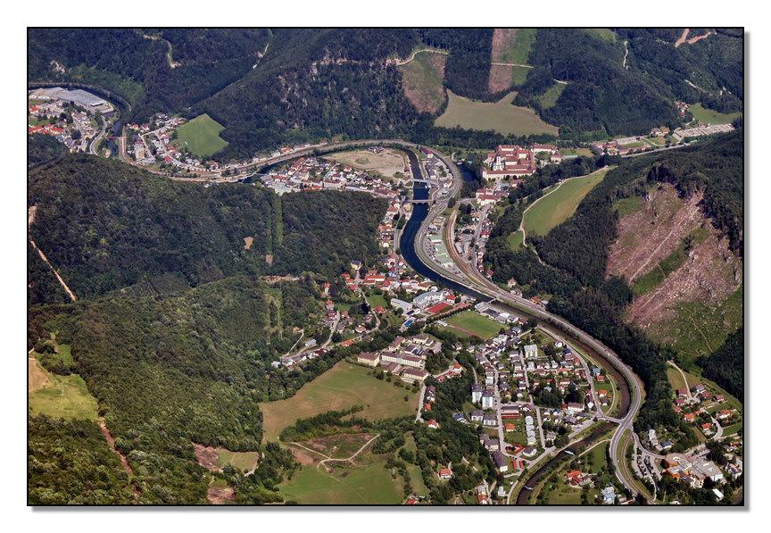 Nach Schrambach kommt das Stangental - dann das Zentrum der Stadt Lilienfeld mit seiner Basilika