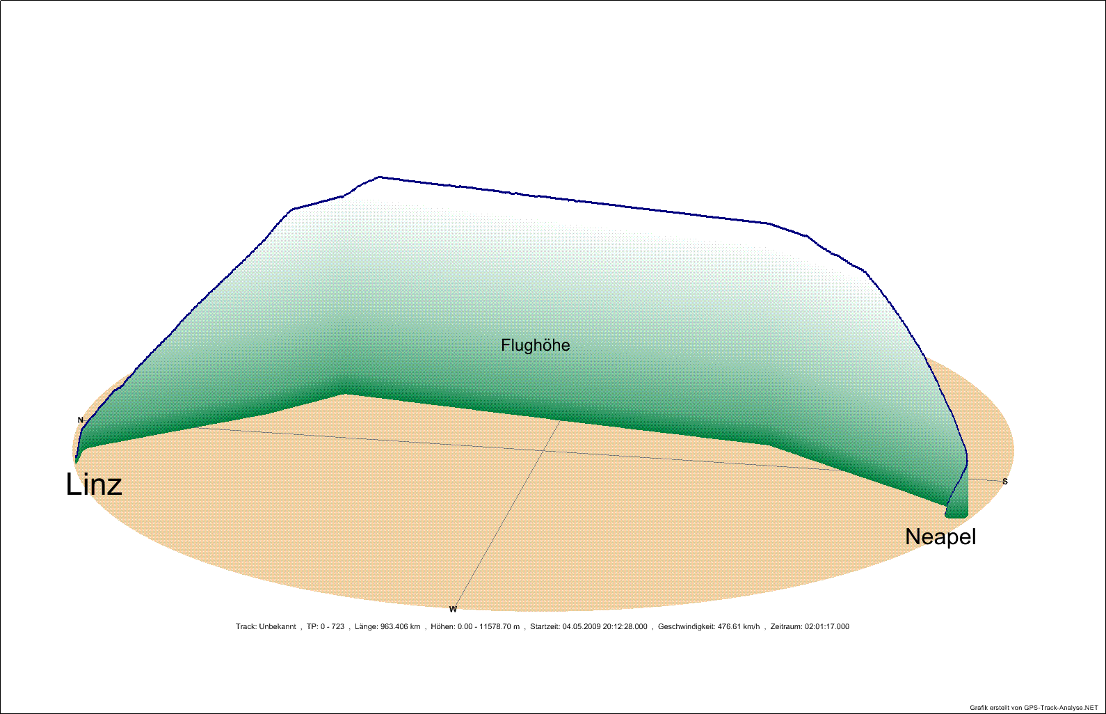 Flugrute in WikiLoc - GoogleEarth - 2D-Profil - 3D-Profil