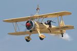 Da Wingwalking einiges an Luftwiderstand mehr bedeutet verfügt diese Stearman über 450 PS.