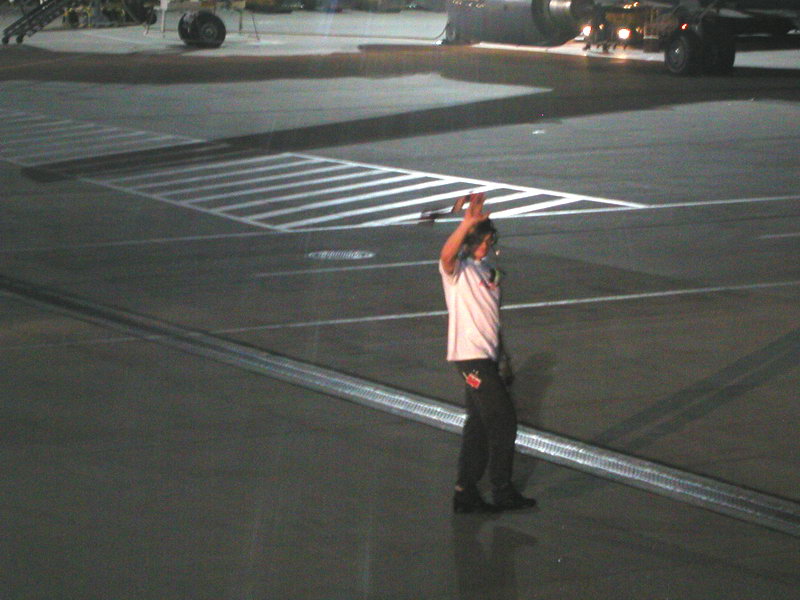 abgekoppelt, so dass es beim pushback frei bewegt werden kann.